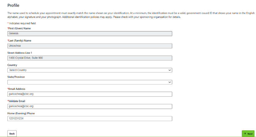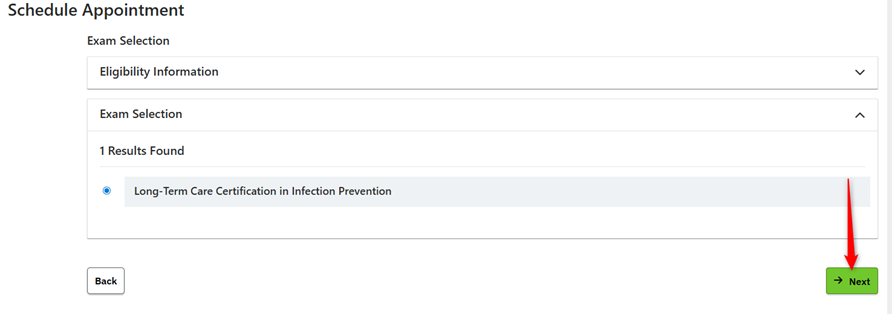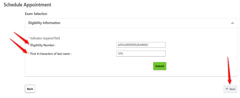 STEP 8: Your examination name should appear below your eligibility information. Click Next.