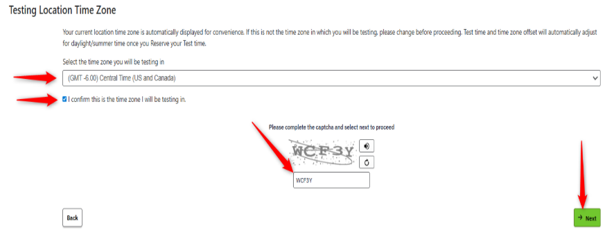 STEP 11: (Only applies to scheduling via Remote Proctoring) Enter your time zone.