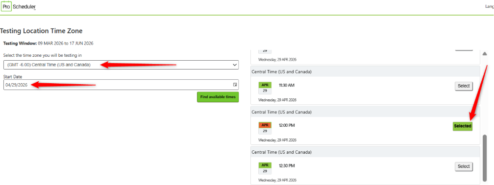 STEP 12: (Only applies to scheduling via Remote Proctoring) Schedule your exam based on your preference and availability.