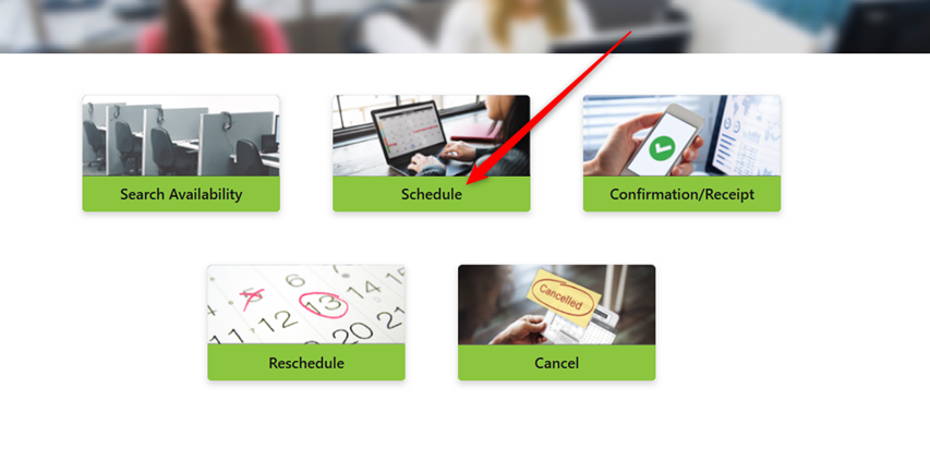 STEP 3: Click Schedule under your preferred method of Testing (Please Note, it is recommended to take an exam at a testing center).